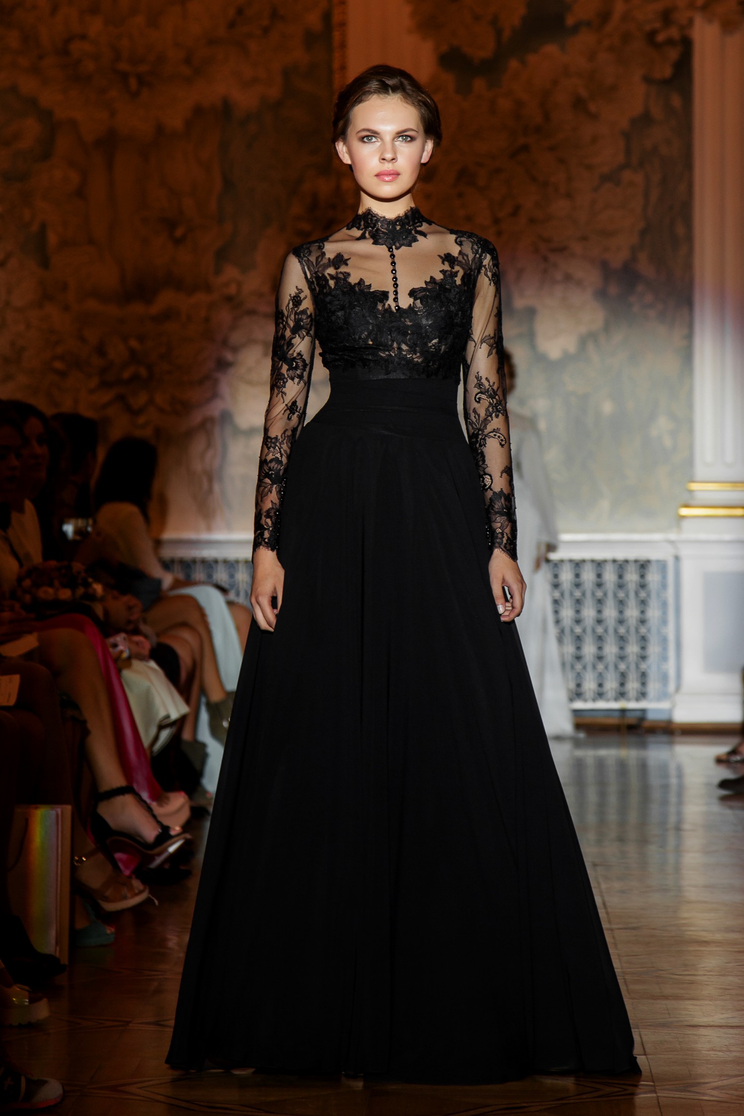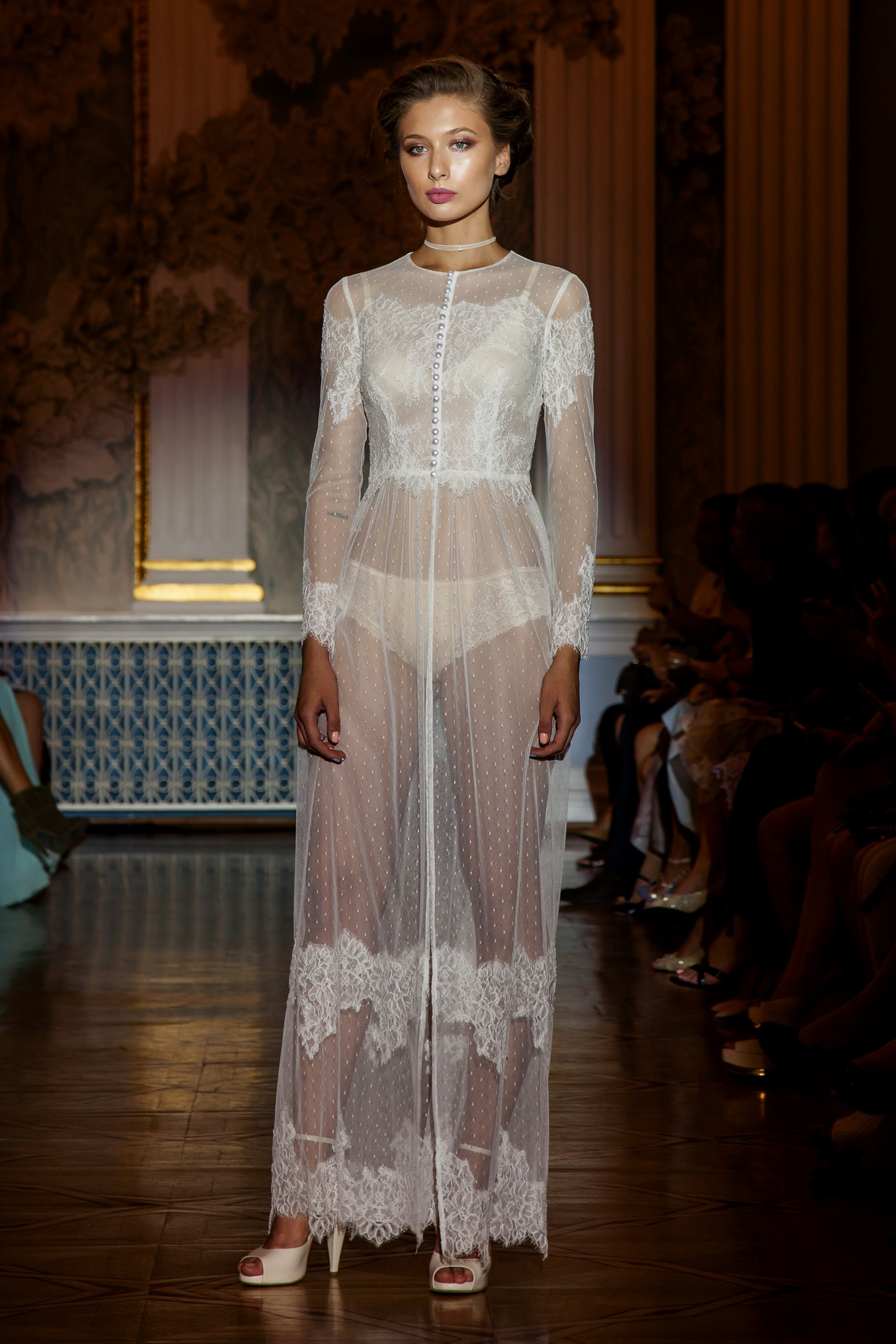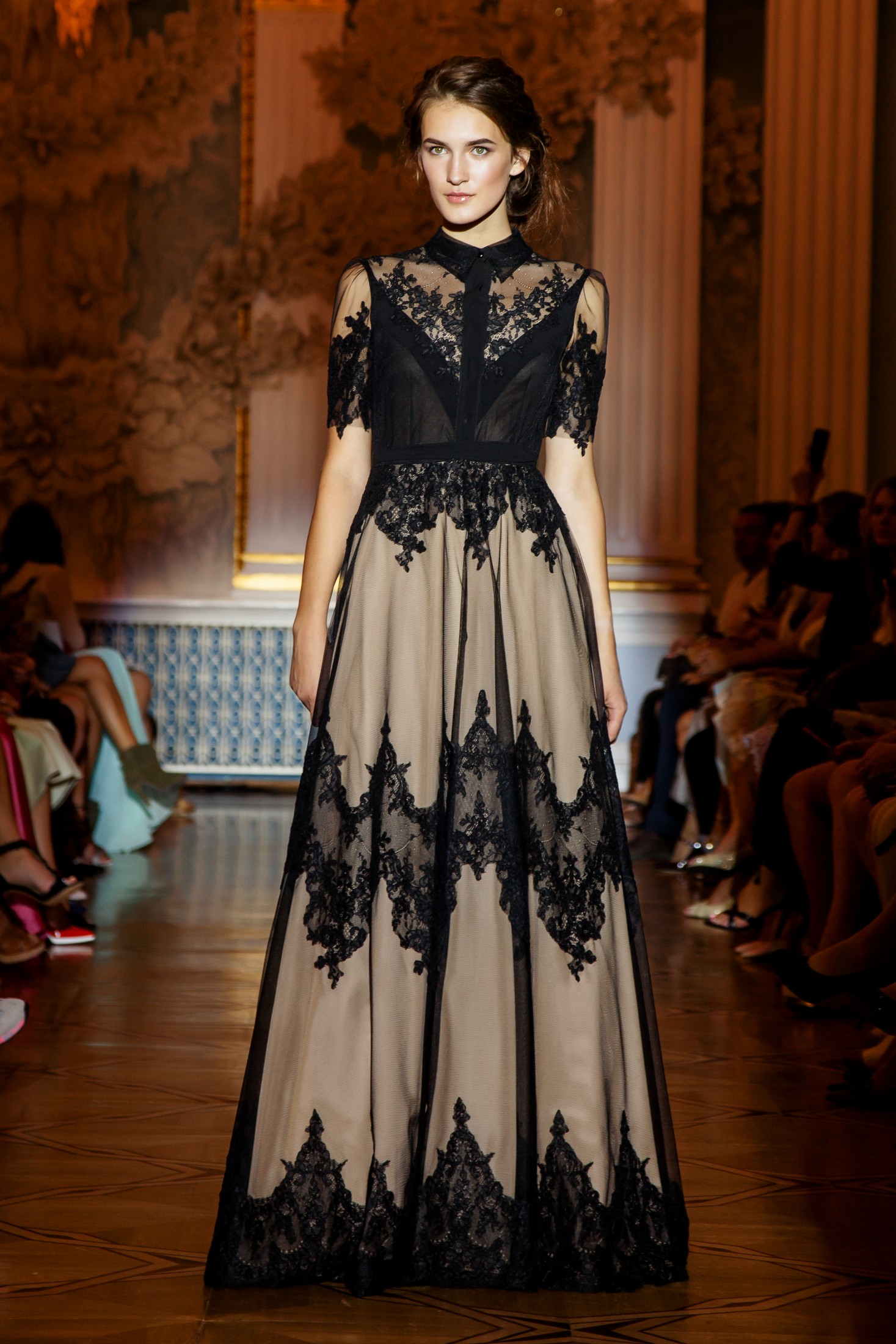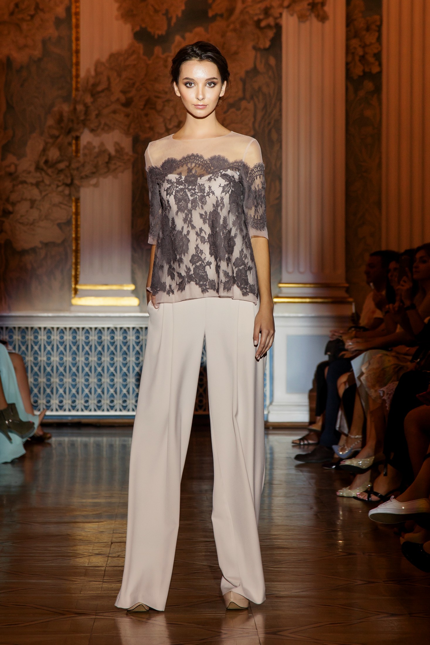 Несмотря на то, что показ Papilio длился дольше обычного, у зрителей не возникло ощущение, что им снова и снова демонстрируют один и тот же наряд с едва заметными изменениями декора, как это часто случается с bridal-шоу. Практически каждый выход нес на себе значительный и очевидный отпечаток аутентичности, отчего внимание гостей показа было непрерывно приковано к происходящему на подиуме. Свадебные платья сменялись элементами шоу «подружки невесты», «девишник» и «family look» и опять возвращаясь к церемониальному «wedding catwalk». Вечерняя коллекция также порадовала зрителей и цветовым всплеском: бескомпромиссный алый, королевский синий, благородный изумрудный и бросающий вызов черный наряду с куда более аристократическими пудрово-каменными и кремовыми оттенками, и разнообразием фасонов и текстур!
