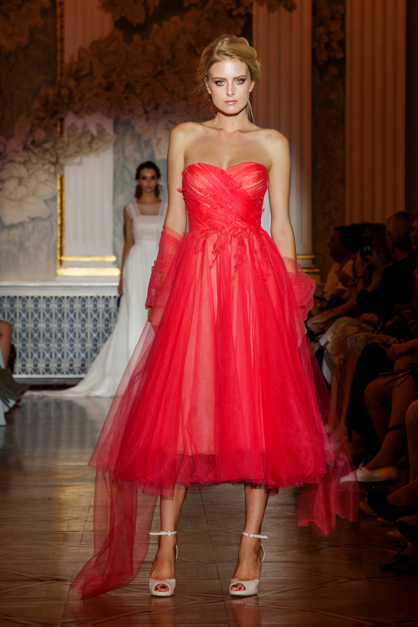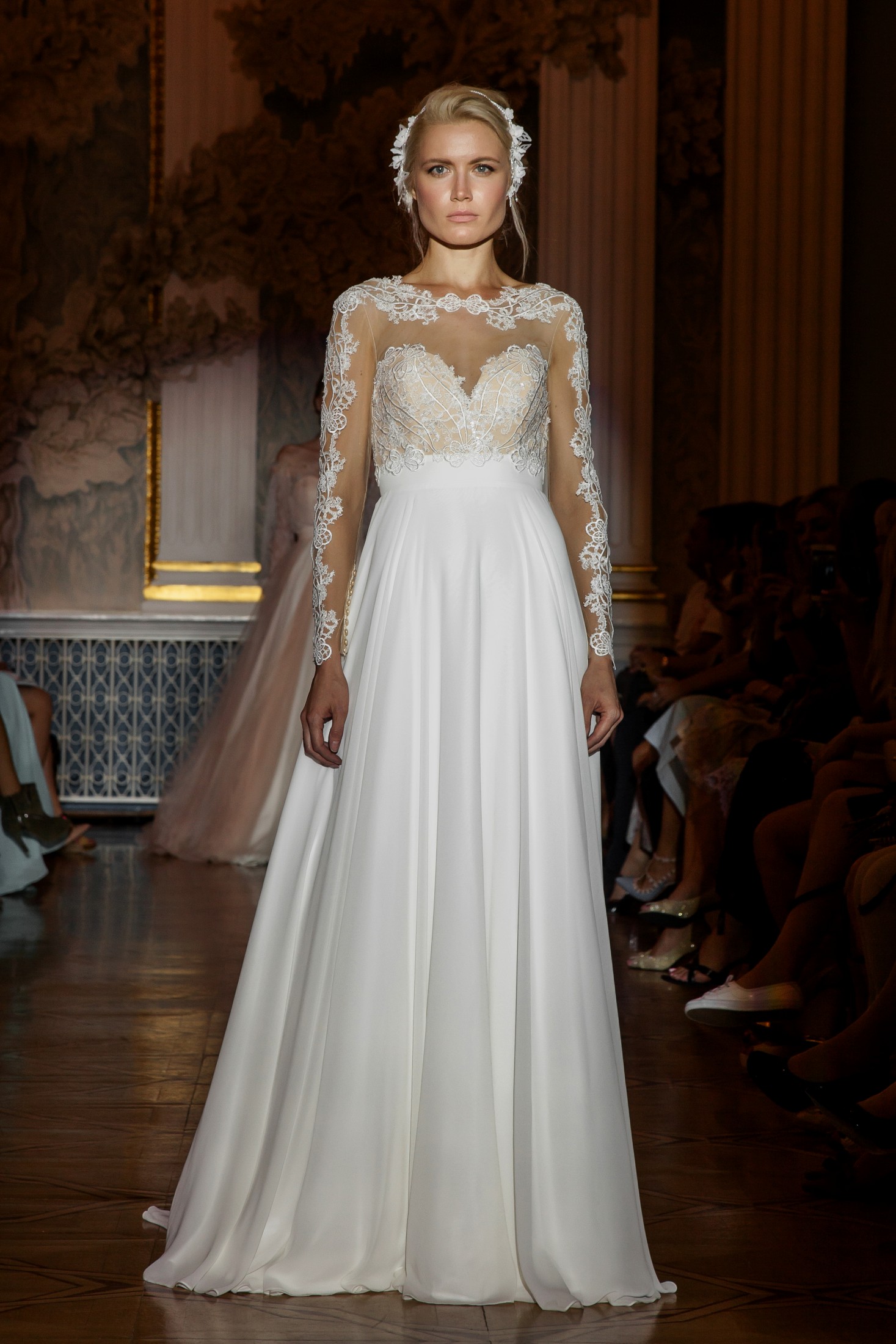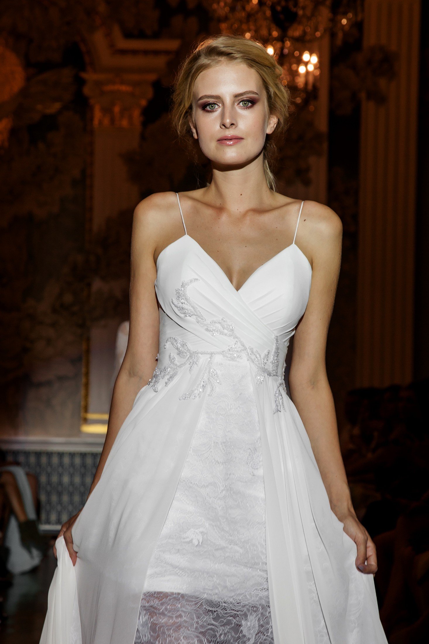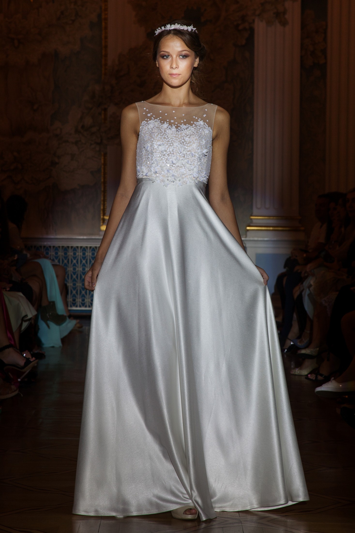 Впервые на площадке в Dipservice Hall свои коллекции представили известные белорусские производители свадебных платьев, а также бренды, создающие вечерние наряды (haute couture) для особенно торжественных случаев.